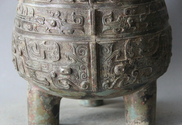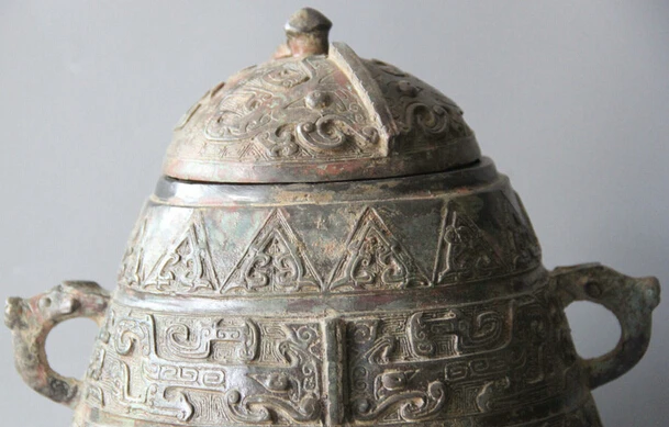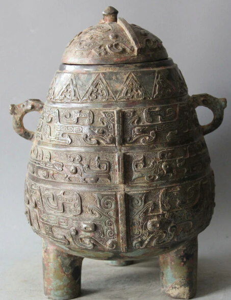 BEST QUALITY JP S61 13" Archaic Chinese Bronze Handle Beast Vessels Ware Wine Water Pot Jar Crock