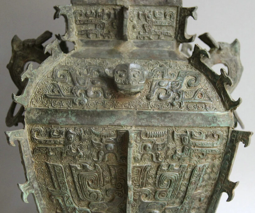 HOT Sale Elegant old S2219 19" Old Chinese Bronze Folk square handle water food vessel kettle Pot Jar Crock