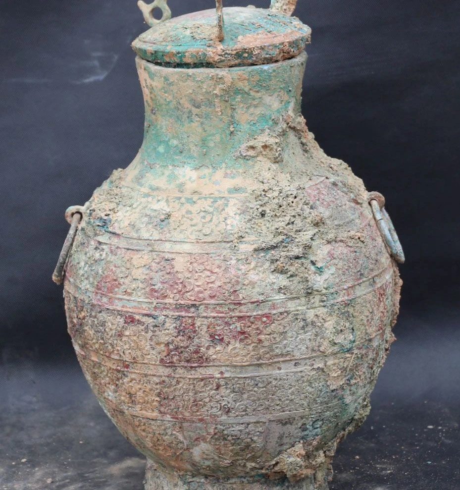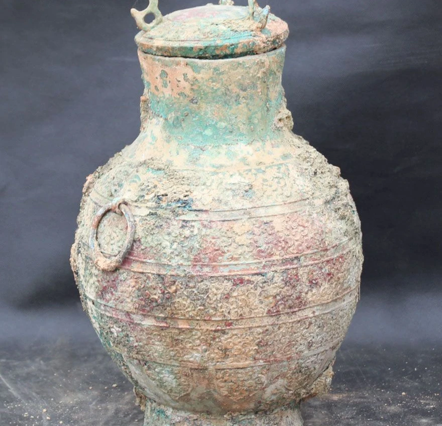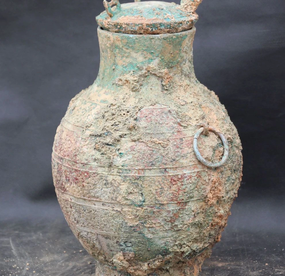 18" Old Ancient China Dynasty Palace Bronze Wine Water Foot vessels Bottle Vase