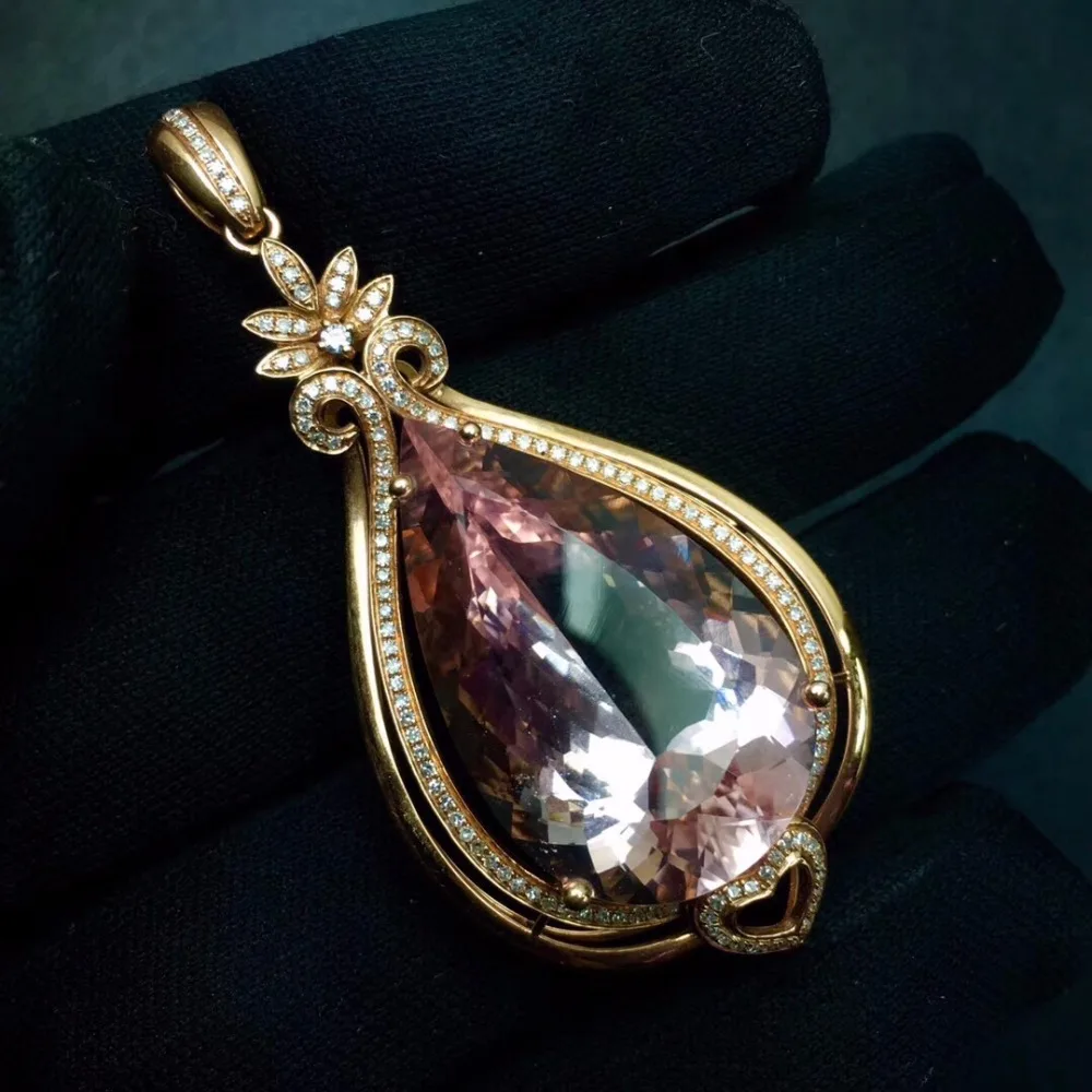 HOT SALE Fine Jewelry Real Pure 18 K Rose Gold Jewelry AU750 100% Natural Morganite Gemstone 33.8ct Pendants